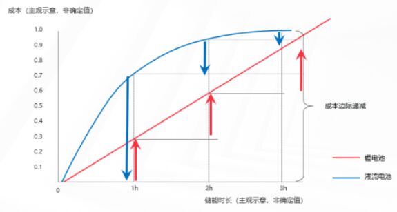在應用場合方面,液流電池正在與鋰離子電池形成差異化競爭,主要在4小時及以上,百兆瓦時以上的容量儲能場合進行推廣。相較平均儲能時長2小時的鋰電池,鋅鐵液流電池選取了鋅和鐵兩種儲備豐富、成本極低、價格波動平穩的金屬進行配對,不僅做到了電池產品本征安全,不燃不爆,還因為原材料儲備豐富、易獲取,可以通過規模化量產來逐步降低液流電池的度電成本,提升配儲的使用率。更難得的是,鋅鐵液流電池可以實現4-8小時儲能時長,使用壽命超過20年,循環次數超過20000次等優勢,更適合未來大量使用新能源的電網。