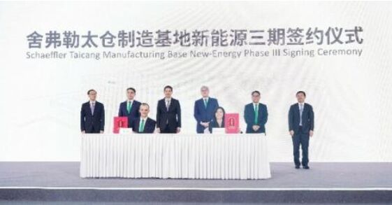 在新能源二期工廠啟用儀式上,舍弗勒與太倉高新區簽訂新能源三期項目投資協議,繼續加碼新能源業務,擴大在華投資。新能源三期項目占地約70,000平方米,投資額達2億歐元(約合15億人民幣),聚焦新能源電驅動領域,涵蓋如輪轂電機、電橋減速箱、混動變速箱等新能源汽車產品的生產制造,以及物流倉儲等配套設施。