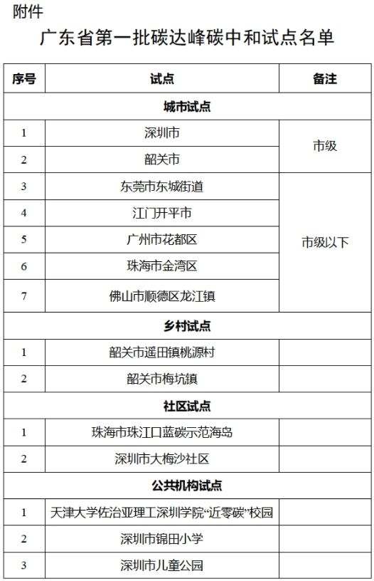 廣東省發展改革委關于我省第一批碳達峰碳中和試點名單的公示