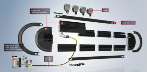 一套完整的模塊化 XTS 系統(tǒng)由電機(jī)模塊、導(dǎo)軌和動(dòng)子,以及裝有 TwinCAT 自動(dòng)化軟件的工業(yè) PC 構(gòu)成,可以根據(jù)具體的設(shè)備或系統(tǒng)布局進(jìn)行調(diào)整。