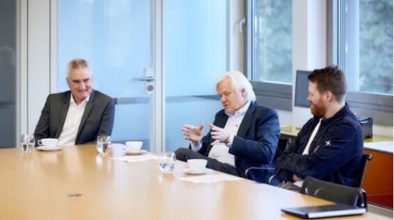 Hans Beckhoff(中間)和 Martin Rostan(左)回顧 EtherCAT 技術過去 20 年的發展歷程并與代表下一代管理層的 Johannes Beckhoff(右)分享了他們多年積累的經驗