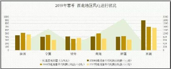 從設(shè)備平均利用小時(shí)數(shù)上看,2019年第一季度,華北地區(qū)風(fēng)電設(shè)備平均利用小時(shí)數(shù)普遍較高,其中北京最高達(dá)到683小時(shí)、天津較低為578小時(shí)。與去年同期相比,華北區(qū)域風(fēng)電設(shè)備平均利用小時(shí)數(shù)出下了較大幅度的下滑,其中山西、山東、河北下滑幅度分別達(dá)到183小時(shí)、144小時(shí)、116小時(shí)。 中電傳媒電力傳媒數(shù)據(jù)研發(fā)中心跟蹤顯示,受到清潔能源消納、及風(fēng)電上網(wǎng)電價(jià)政策影響,第一季度,內(nèi)蒙古錫盟100萬千瓦風(fēng)電項(xiàng)目、山西運(yùn)城、大同風(fēng)電項(xiàng)目、河北張家溝18個(gè)風(fēng)電項(xiàng)目、山東2各風(fēng)電項(xiàng)目相繼落地,日前,內(nèi)蒙古自治區(qū)發(fā)改委發(fā)布的《關(guān)于2019-2021年自治區(qū)級重大項(xiàng)目滾動實(shí)施計(jì)劃》顯示,2019-2021年重點(diǎn)建設(shè)風(fēng)電項(xiàng)目共計(jì)23個(gè),總建設(shè)規(guī)模12655.1MW,這意味著內(nèi)蒙古風(fēng)電裝機(jī)容量在近3年內(nèi)凈增長44%,華北地區(qū)即將迎來4年來最大風(fēng)電裝機(jī)潮。另外,華北地區(qū)電力現(xiàn)貨市場的穩(wěn)步提速,2018年12月24日,山西啟動現(xiàn)貨市場模擬試運(yùn)行,今年6月,蒙西、山東也即將同步啟動,現(xiàn)貨市場為該地區(qū)風(fēng)電建設(shè)帶來良好預(yù)期。 隨著風(fēng)電裝機(jī)規(guī)模的快速增長,華北地區(qū)風(fēng)電消納壓力也持續(xù)增大。第一季度,各地風(fēng)電設(shè)備平均利用小時(shí)數(shù)出現(xiàn)不同程度下滑態(tài)勢。預(yù)計(jì),穩(wěn)步上漲的裝機(jī)熱潮將持續(xù)沖擊設(shè)備平均利用小時(shí)數(shù),在全社會用電量增速放緩,現(xiàn)貨市場尚未完全啟動條件下,華北地區(qū)風(fēng)電消納壓力將面臨短暫壓力。 西北區(qū)域即將建設(shè)一批重點(diǎn)風(fēng)電項(xiàng)目